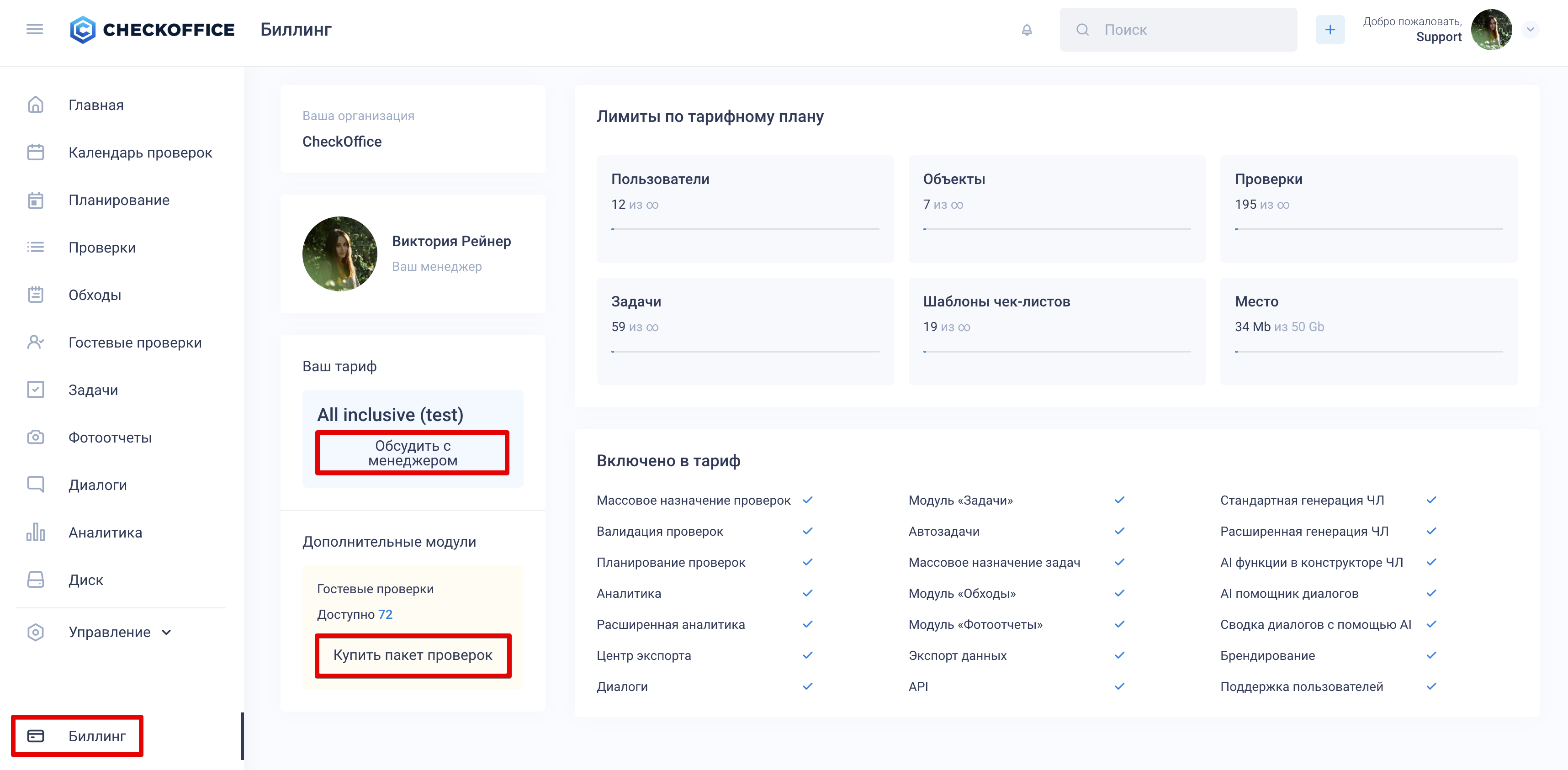Информация о персональном менеджере CheckOffice