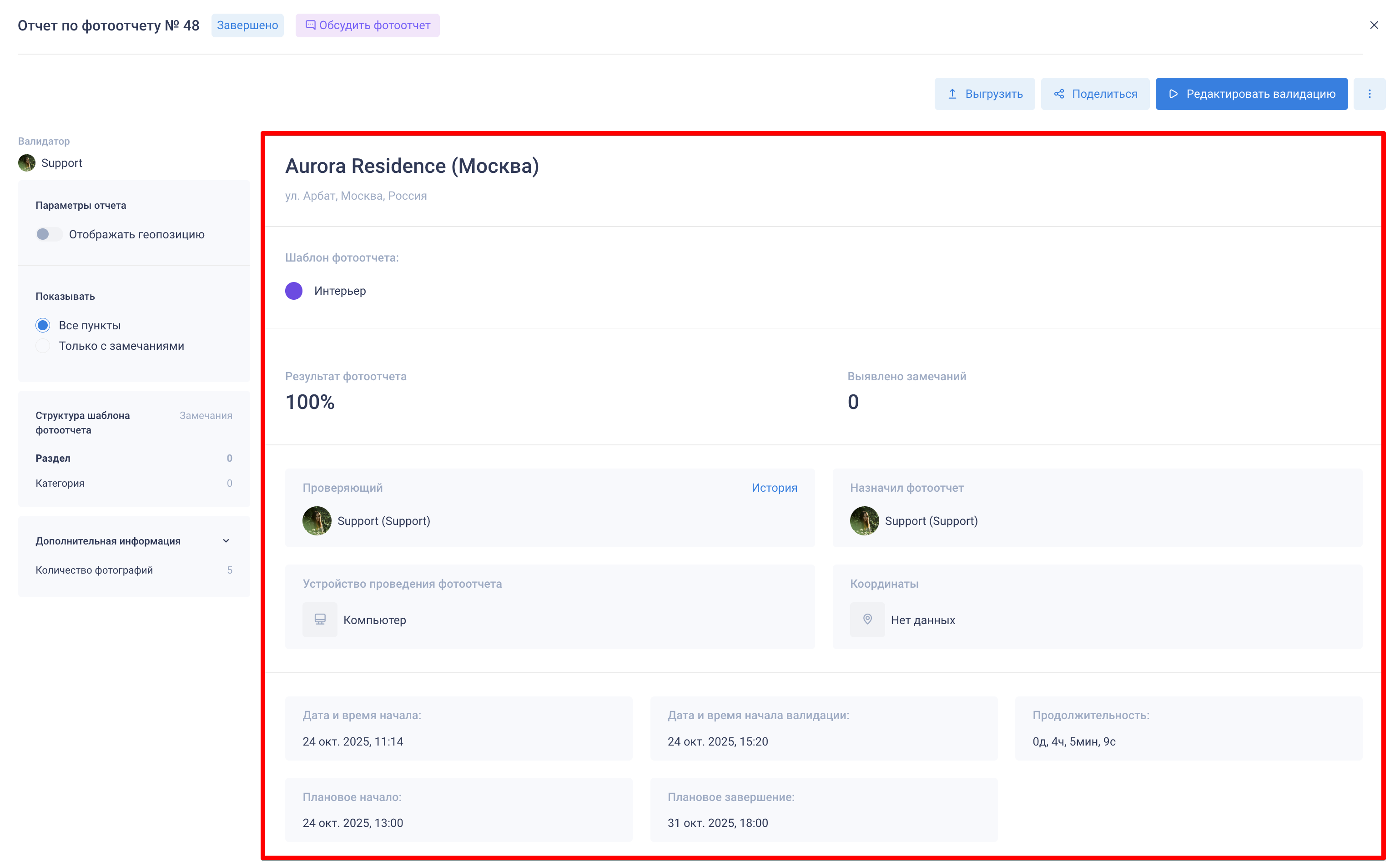 Плановое завершение — дата и время, когда необходимо выполнить фотоотчет
