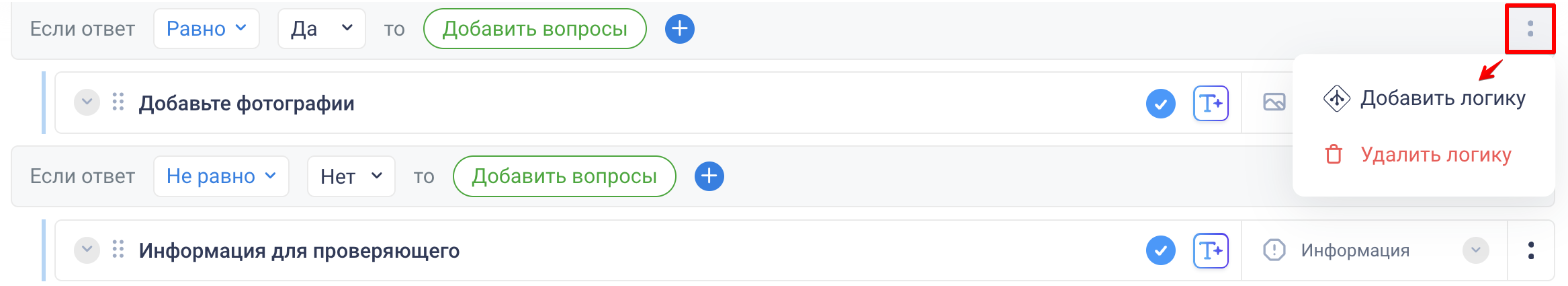 Линейное прохождение фотоотчета — включение запрета на переход к следующему критерию без выполнения обязательных действий в предыдущем. Здесь вы можете активировать запрет на редактирование критериев — если включено, при переходе к следующему критерию редактировать предыдущие ответы будет запрещено