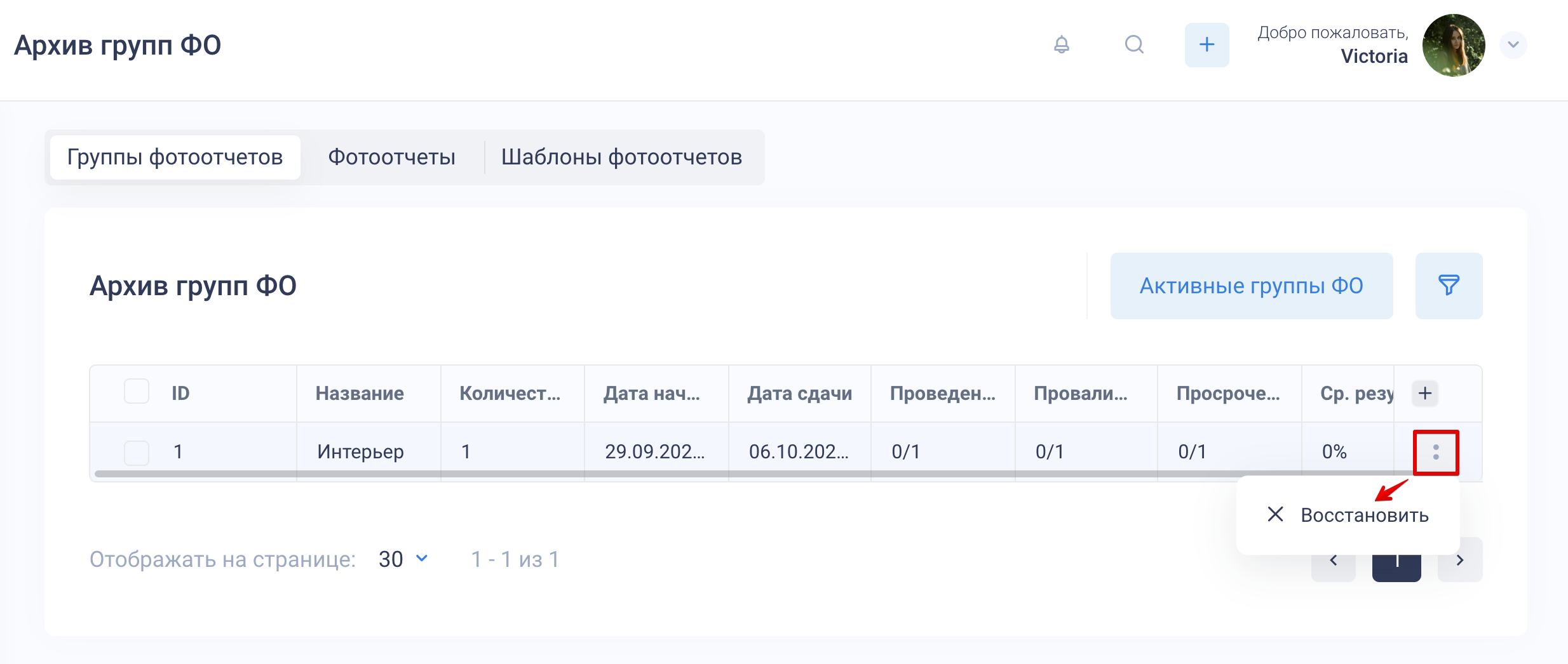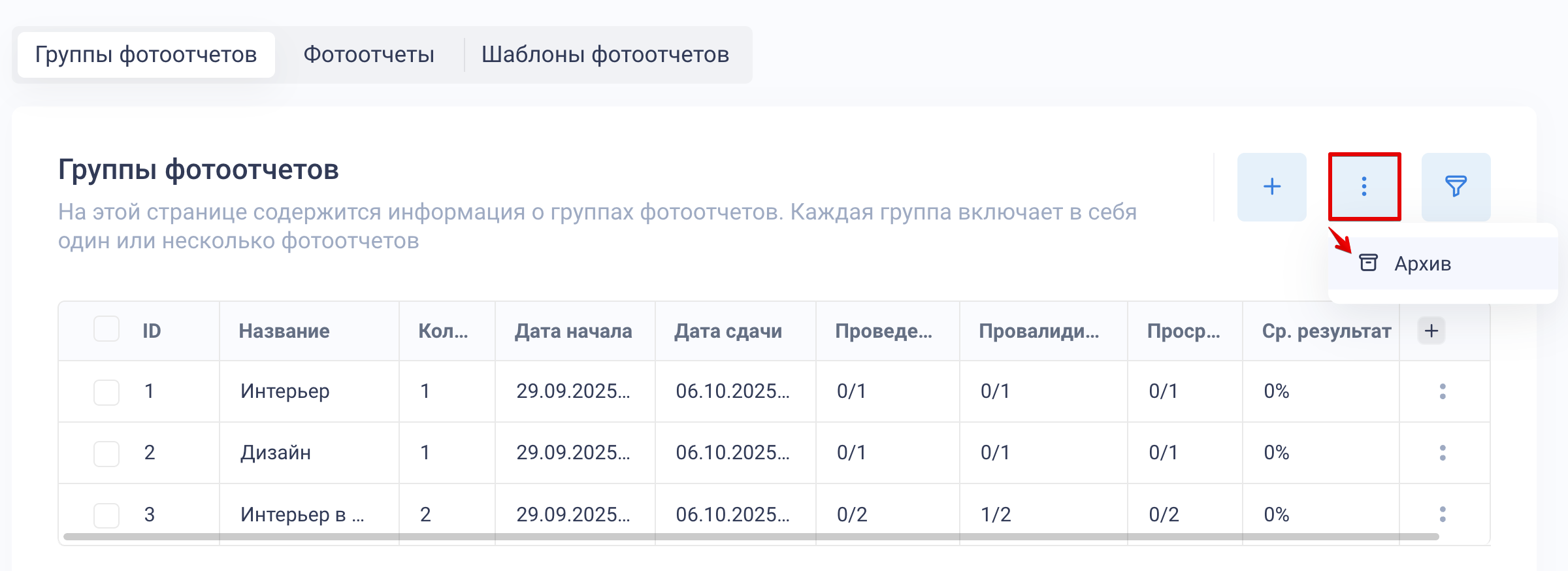 Отсюда можно просмотреть динамику по итерациям, отредактировать название группы фотоотчетов и архивировать их.