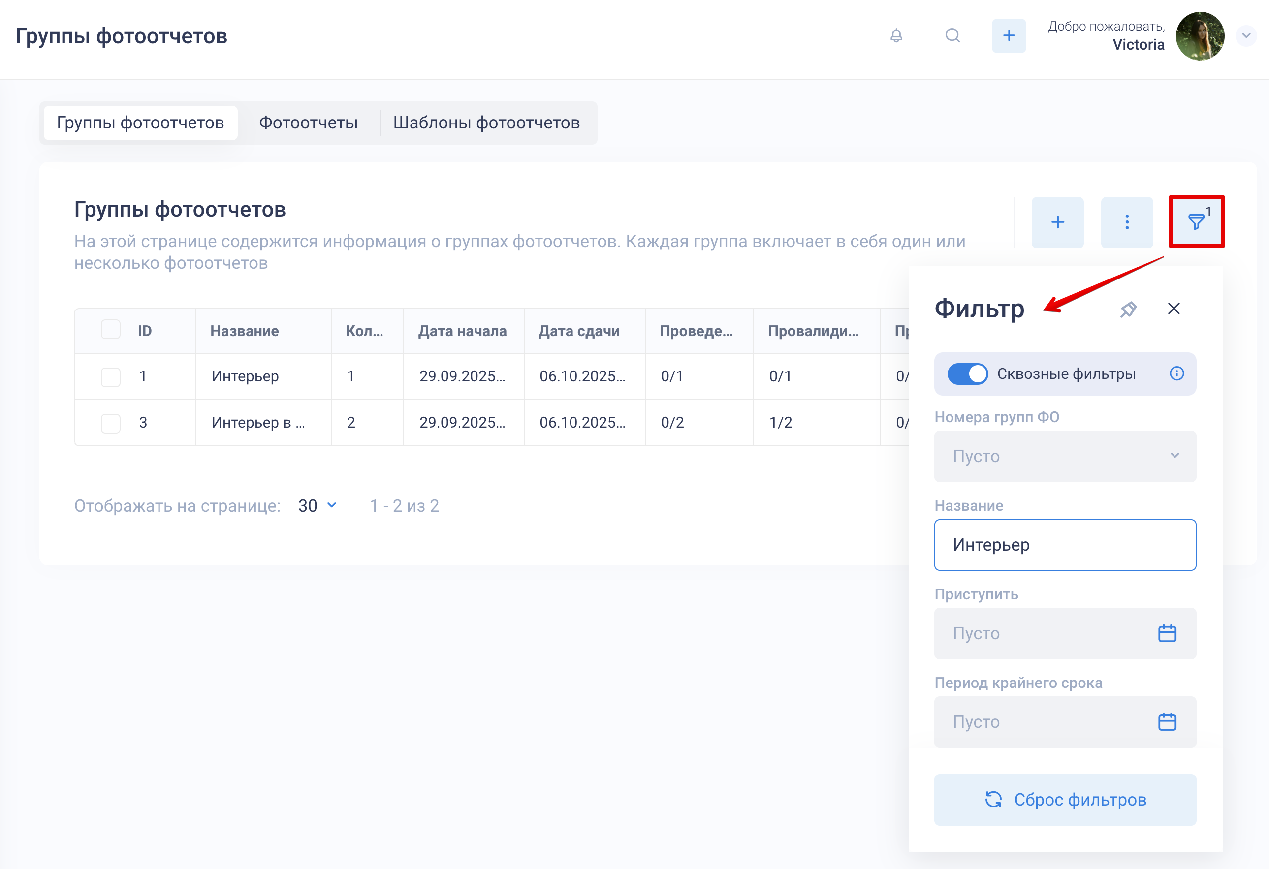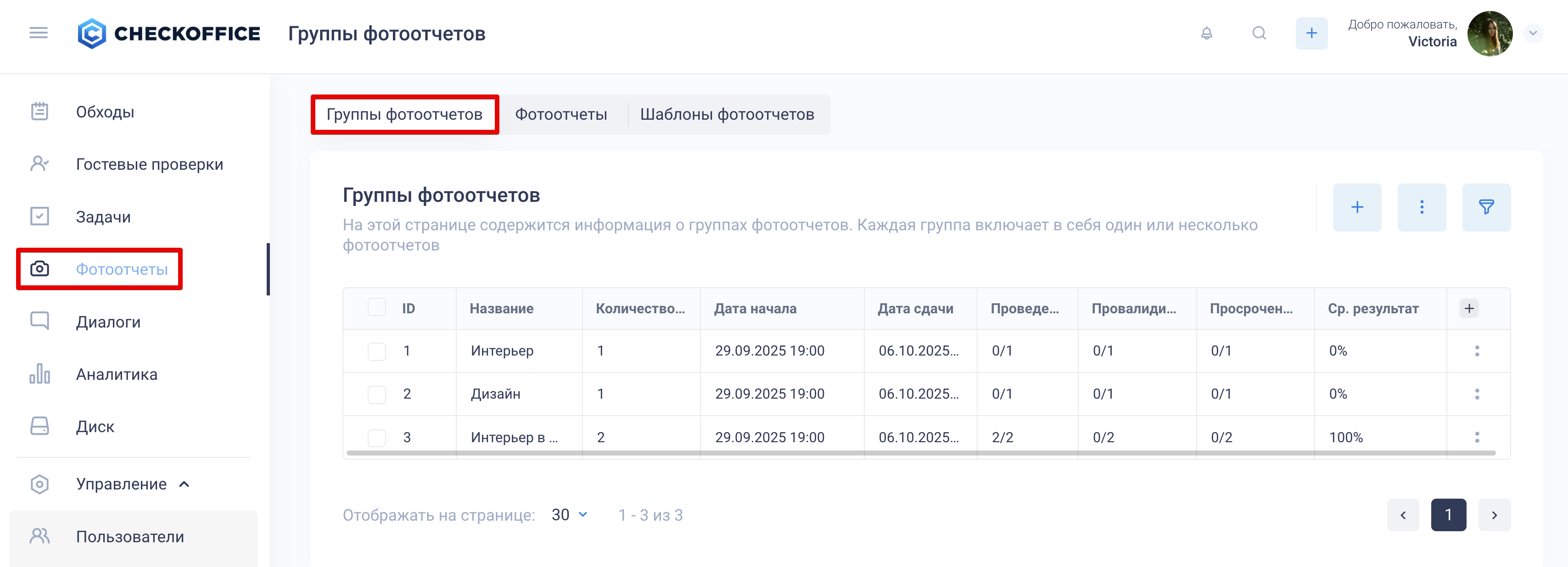 Откройте раздел «Фотоотчеты» > вкладку «Группы фотоотчетов».