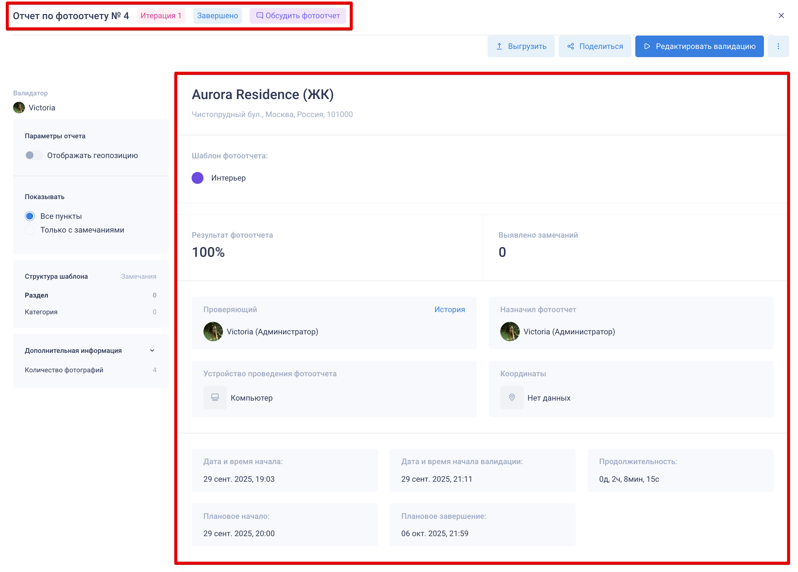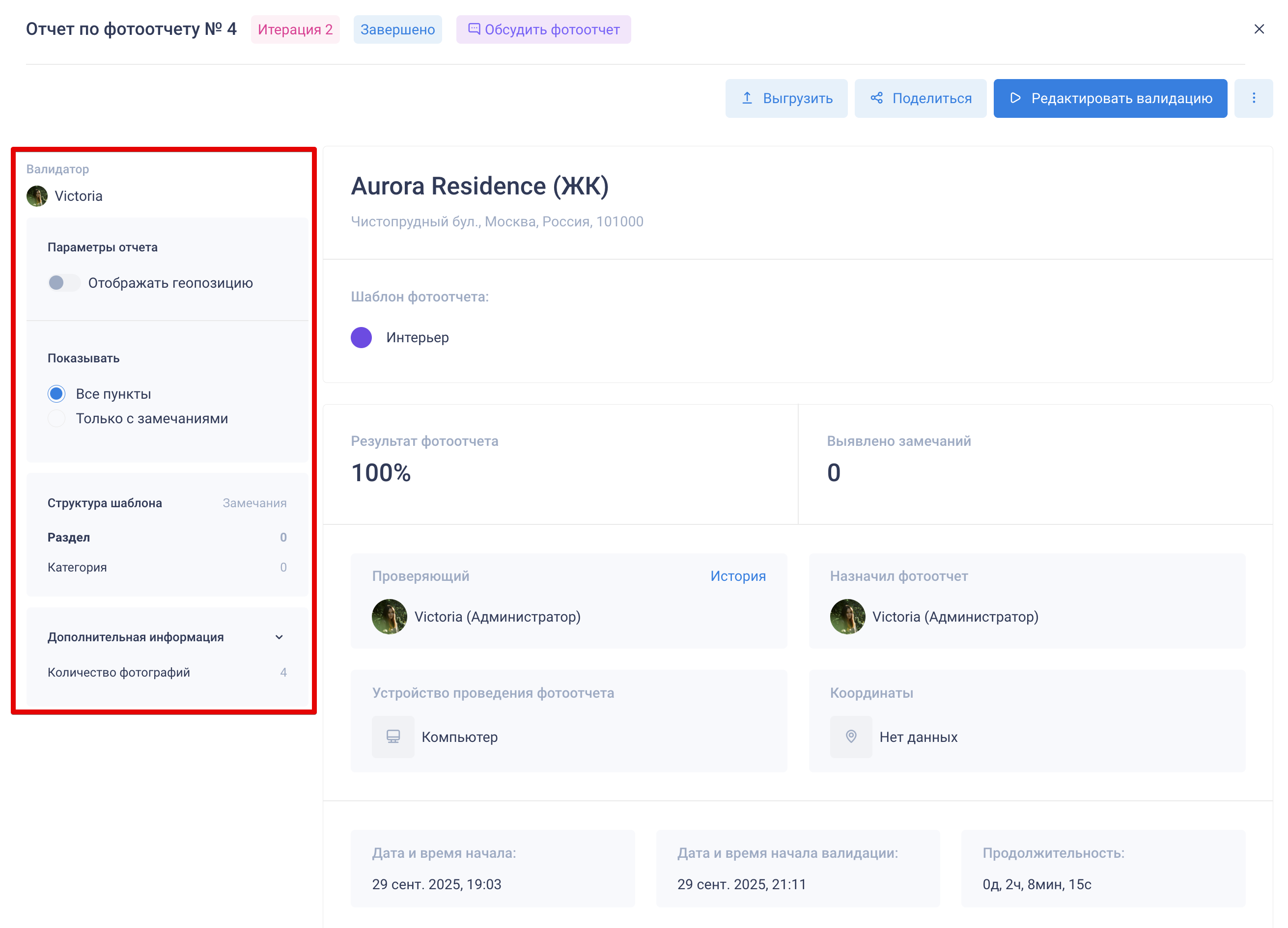 Провалидировано — сколько фотоотчетов прошло валидацию.