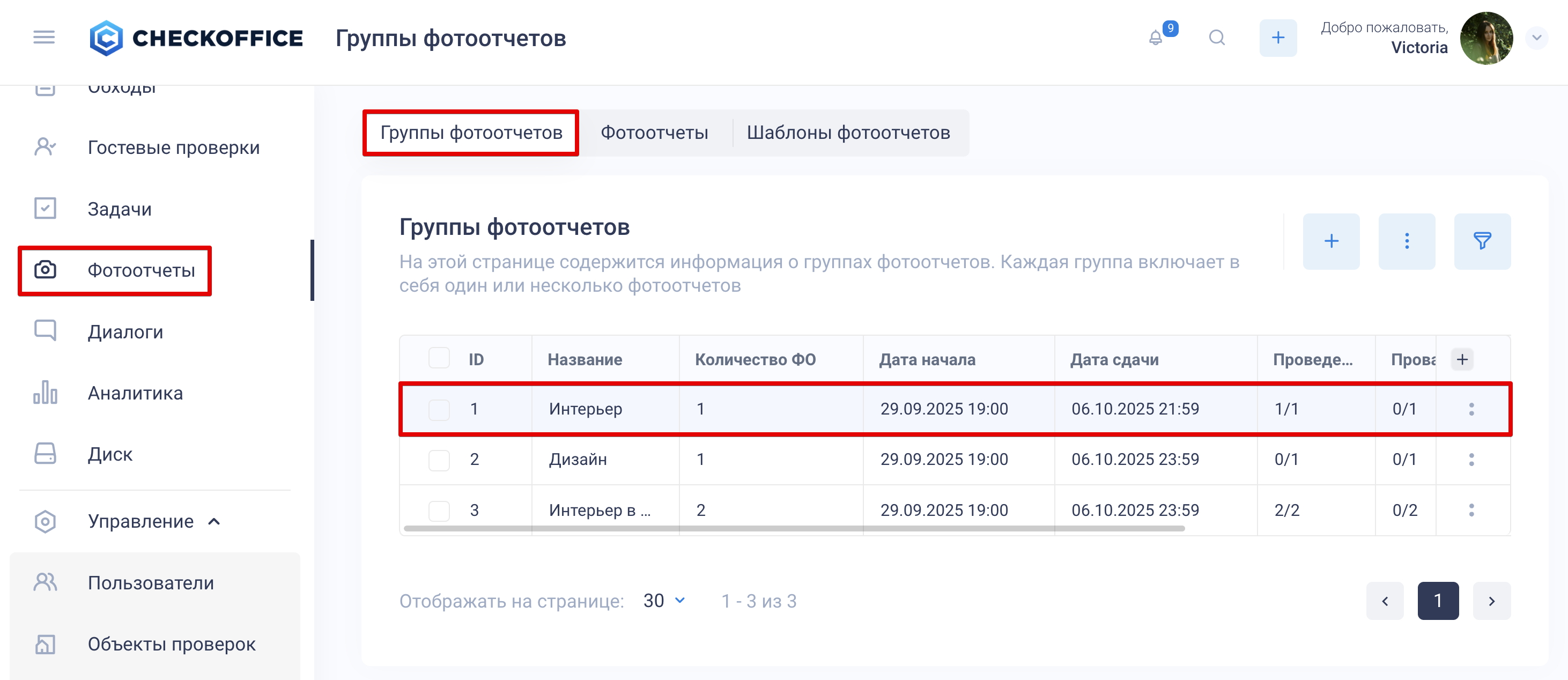Важно: в CheckOffice фотоотчет всегда создается внутри группы фотоотчетов.