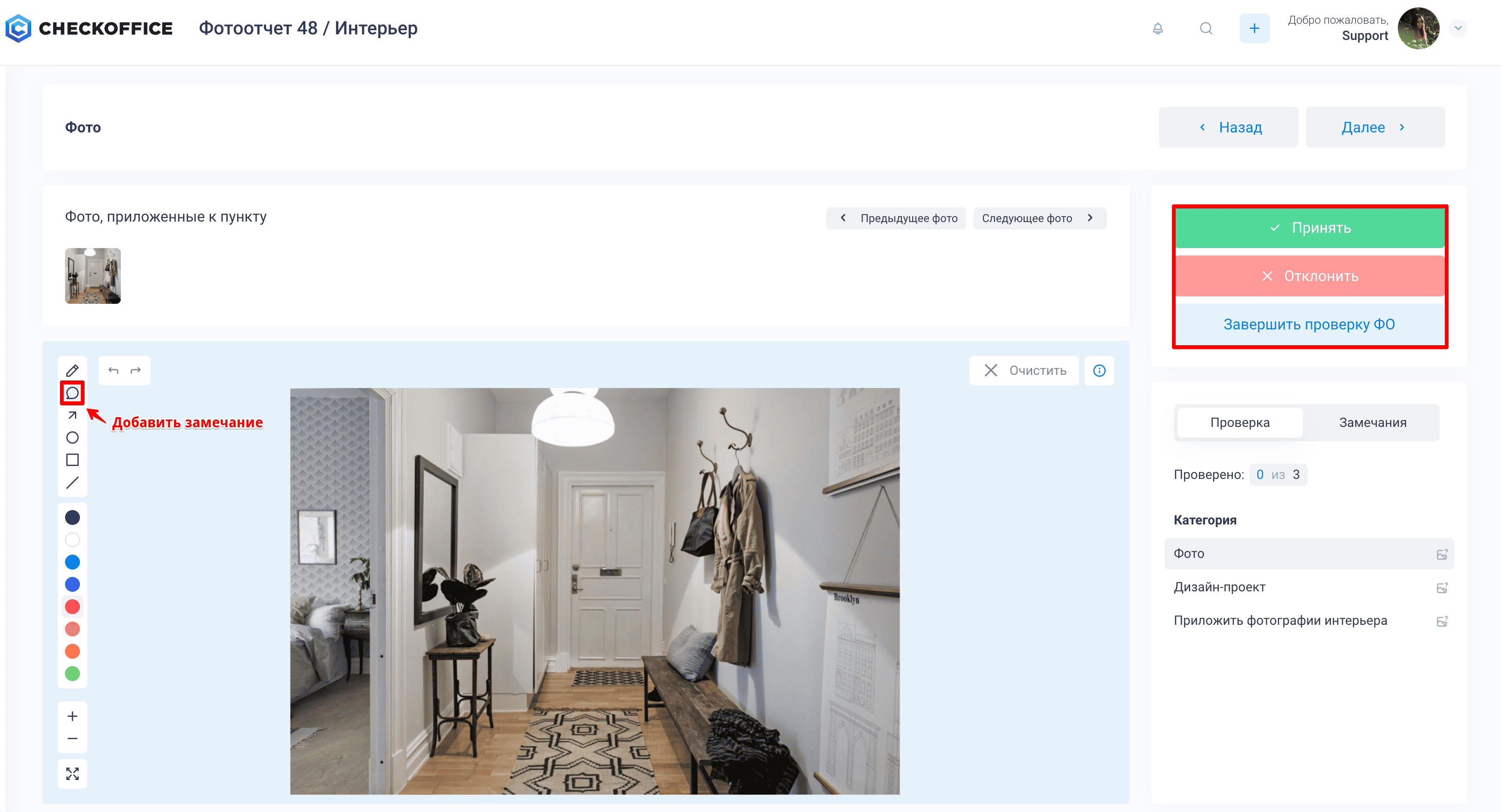 В нашем примере мы добавили одно замечание и отклонили первую фотографию из трех, а остальные — приняли без замечаний.