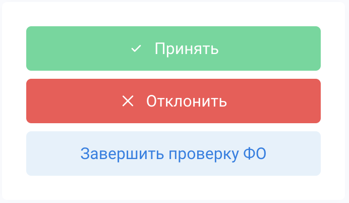 В блоке справа от фотографии расположены кнопки действий: «Принять», «Отклонить», «Завершить проверку ФО».