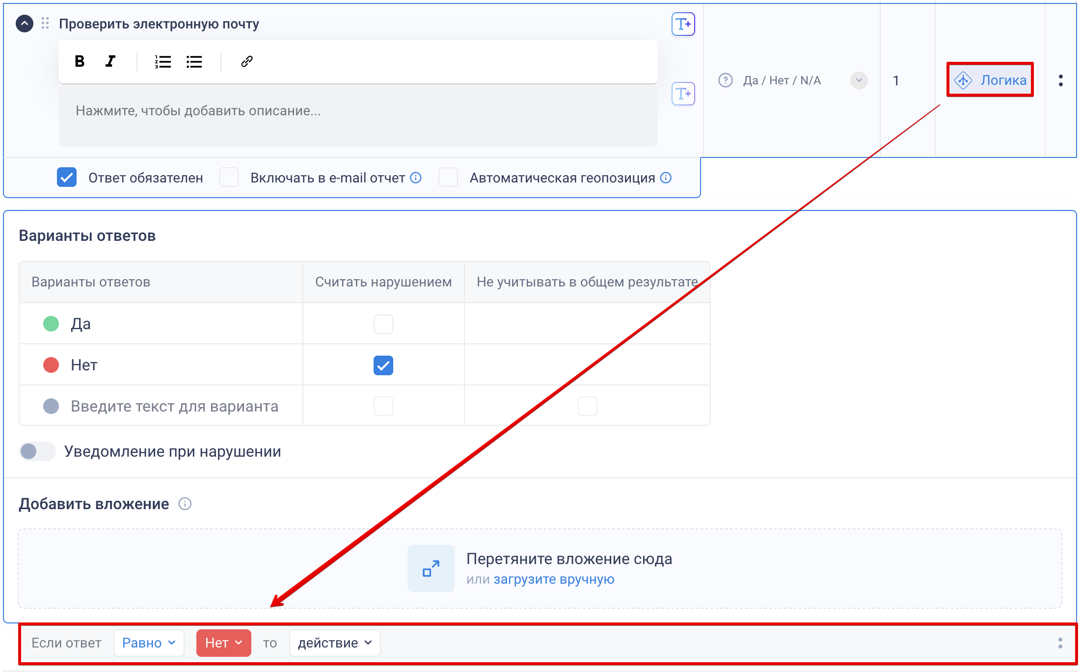 Настройка «Логики» в критерии «Да / Нет / N/A»